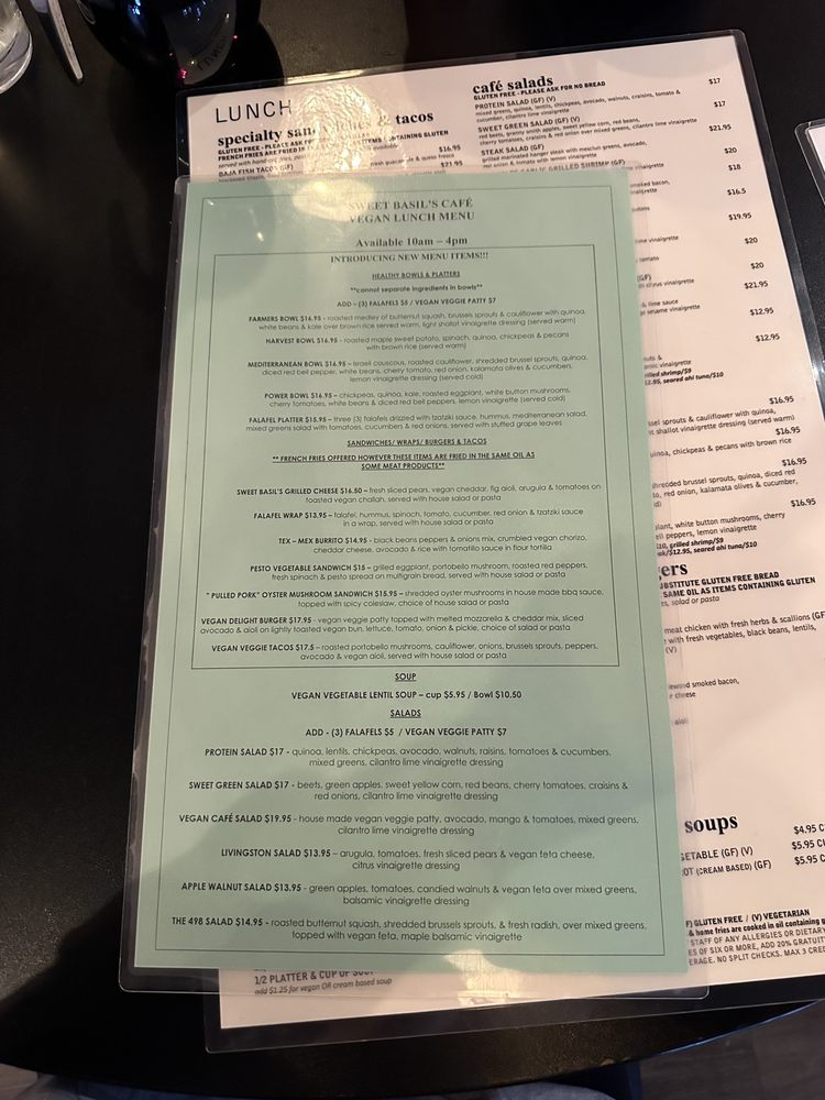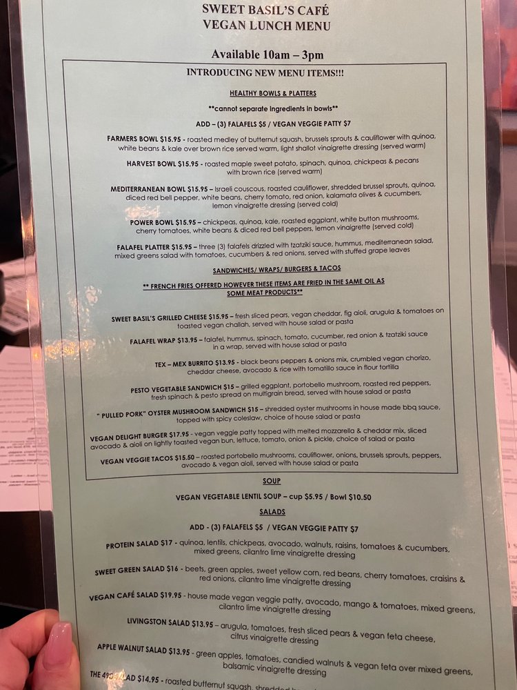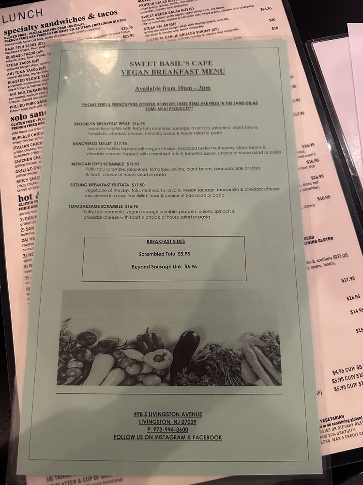 Sweet Basil's Cafe is a charming New American Cafe located in Livingston, NJ. Offering a variety of vegan and vegetarian options, this cafe is perfect for breakfast, brunch, or lunch. Customers rave about the delicious dishes, with favorites like the Vegan Pasta and Eggplant, Poached Pear French Toast, and Pancakes stealing the show. The cafe is wheelchair accessible, has gender-neutral restrooms, and offers amenities like Wi-Fi and outdoor seating. The staff are friendly and attentive, providing exceptional service to all patrons. Whether you're looking for a casual meal or a classy brunch spot, Sweet Basil's Cafe is a must-visit for food lovers in the area. Don't forget to try their famous pancakes, a true highlight of the menu!